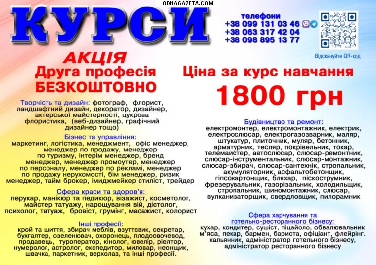 зварник, електрик, слюсар, маляр, штукатур, бетоняр, покрівельник, стропальник, менеджер, грумінг, аніматор, масажист, психолог, шиття, кондитер, сушист, бармен, баріст, тел 0988951377, тел 0991310346.